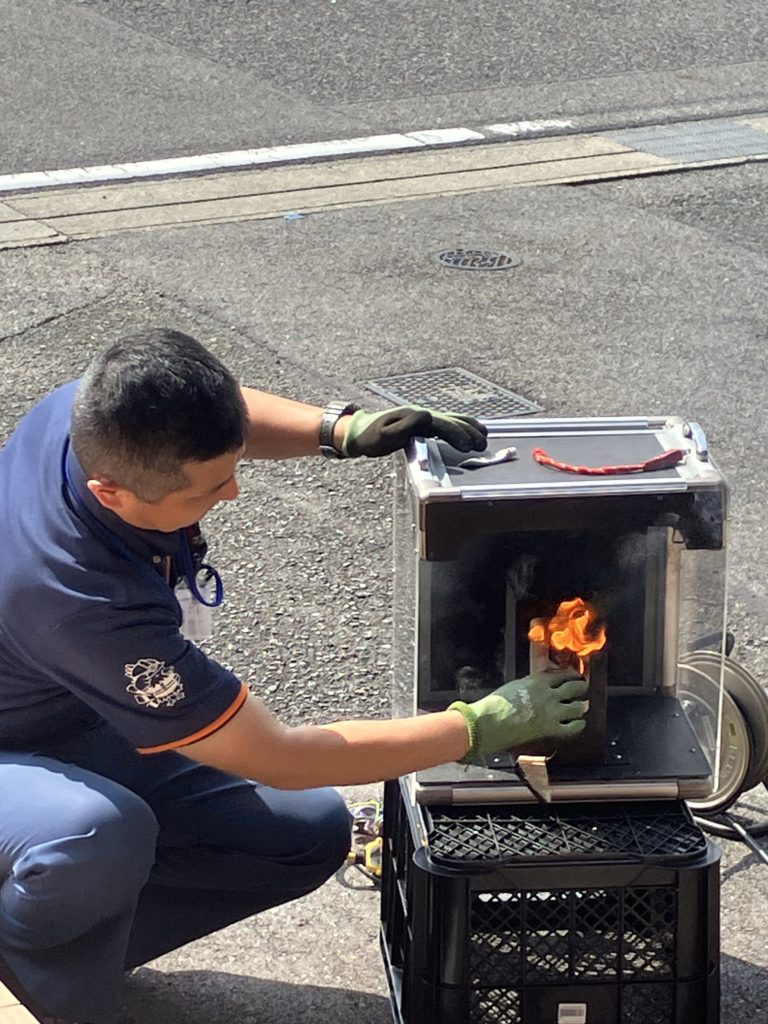 令和7年(2025)8月14日(木)防火のプロである消防士(尾三消防本部)より火災から身を守るための講話や、火災実験の実演をしていただきました。全国的に高齢者が死傷する火災が多数発生しており、被害に遭われる方は「逃げ遅れ」によるものが大半を占めています。