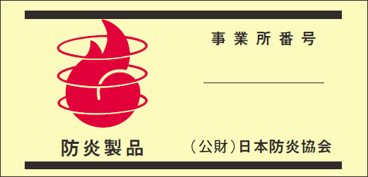 繊維製品には、万が一の火災拡大を防ぐため『燃えにくい』性質に加工された防災品があります。このラベル表示のあるものを選び、積極的に生活に取り入れましょう。