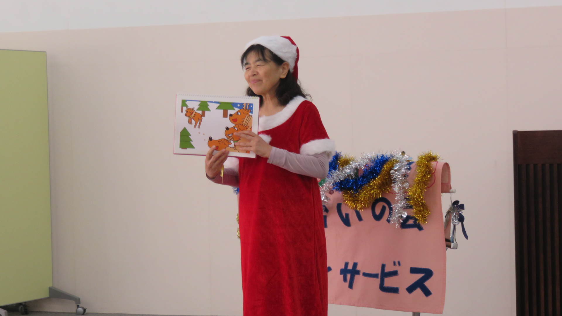 サンタやトナカイの衣装で、12月のクリスマス会を盛り上げる会員の皆さん。口腔体操をしっかり行った後は、口を大きく開けて、クリスマスソングを合唱し、参加者の皆さんが笑顔で歌う姿は、この茶話会を楽しみに参加している気持ちが伝わってきました。また、参加者から、「いつもありがとう!」と歓声が上がっていました。